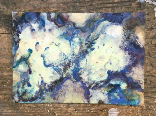 Space Painting (Beach Mountain), 2021, acrylics and nailpolish on paper, 18 x 24cm